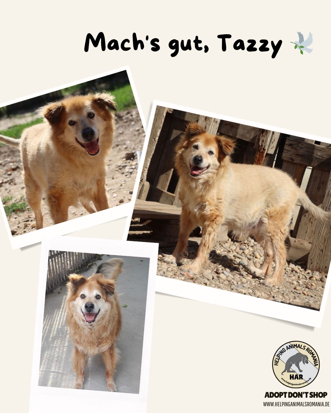 Tazzy blühte hier auf. Er freute sich über jeden Besuch, kam freundlich wedelnd entgegen und ließ sich nach kurzer Zeit voller Vertrauen streicheln und ausgiebig bürsten. Mit seinen Hundekumpels war er stets friedlich, sozial und ausgeglichen.