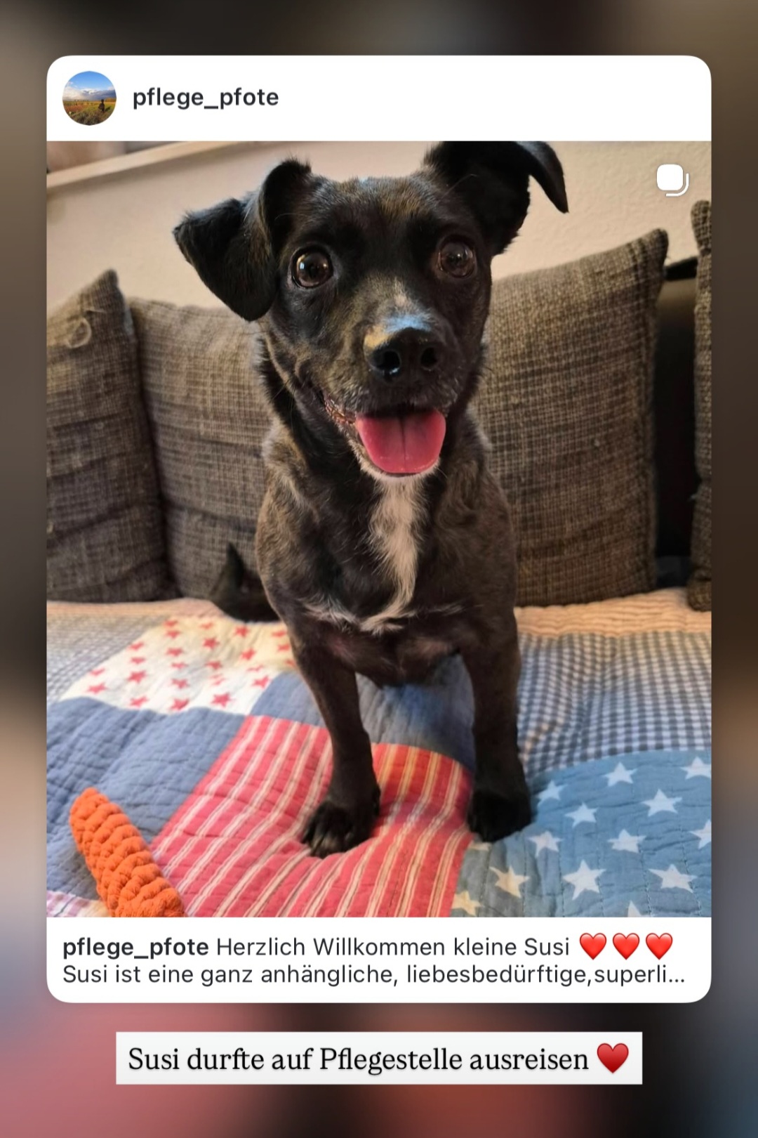 Die kleine Malou durfte ebenfalls ausreisen. Sie hatte ihre Besitzerin verloren, weil diese alt und krank war, und landete schließlich auf der Straße. Ihre Läufigkeit brachte Chaos und beinahe die Hundefänger. Zum Glück wurde rechtzeitig reagiert. Seit November 2025 war Malou bei uns in Sicherheit – nun darf sie endlich ankommen und erleben, wie sich ein echtes Zuhause anfühlt.
