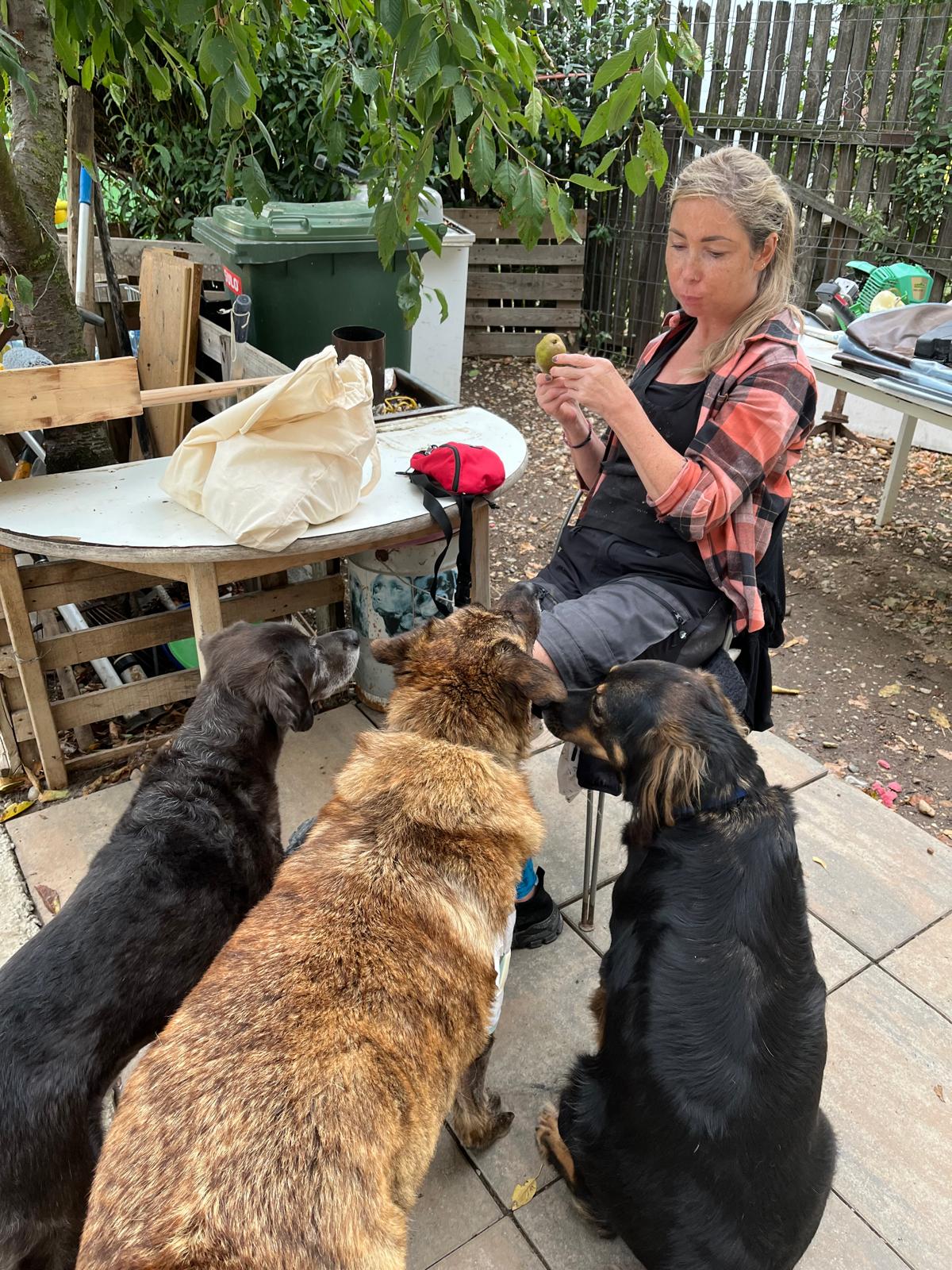 An einem Tag waren ich (Monika) etwas unvorsichtig mit einer Hündin, die ihr Revier sehr deutlich verteidigt. Obwohl wir im Vorfeld vor ihr gewarnt wurden, war ich in einem Moment unachtsam, als ich in ihr Revier/Zuhause eindringen wollte und sie hat mich daraufhin ins Bein gebissen. Nichts Dramatisches, aber ich war geschockt! ... ich wusste es doch besser! Grig war sofort zur Stelle, hat sich rührend gekümmert und täglich nachgefragt, wie es geht. In einem Alltag, der so fordernd ist, wäre es leicht, dass solche Gesten untergehen, aber bei Grig passiert das nicht. Ihre Fürsorglichkeit gilt nicht nur den Tieren, sondern auch den Menschen. ❤️