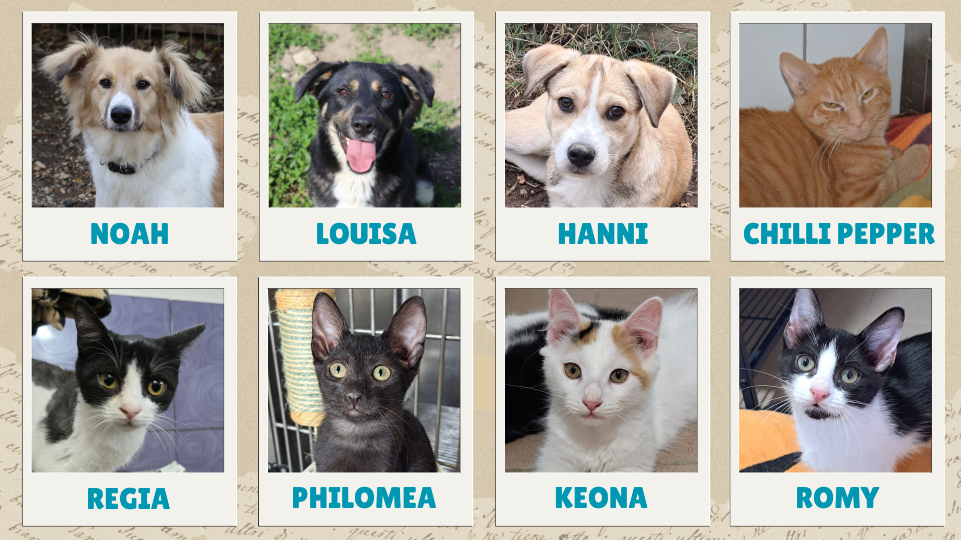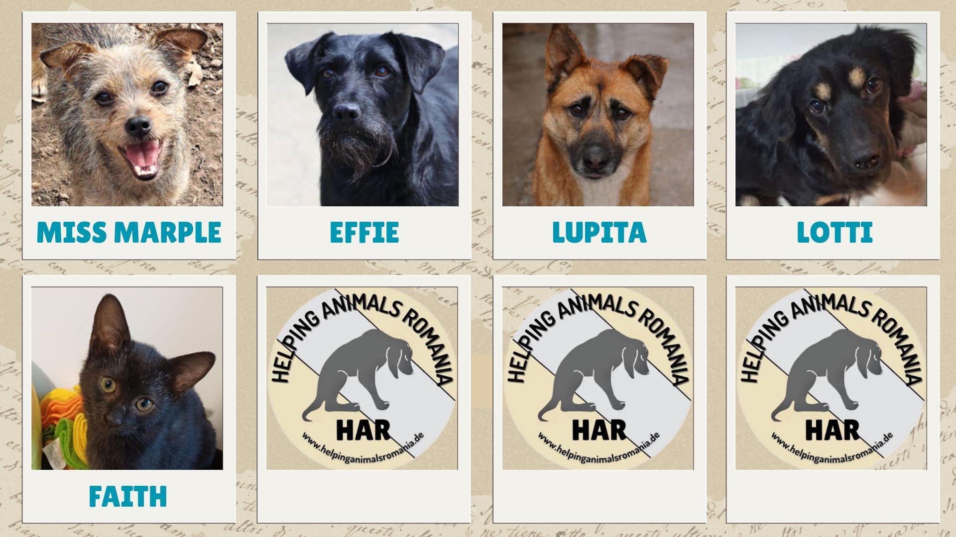 2. Reihe: Cookie, Chip, Oreo, Petra