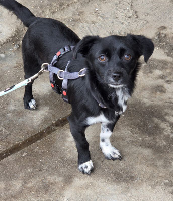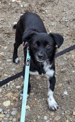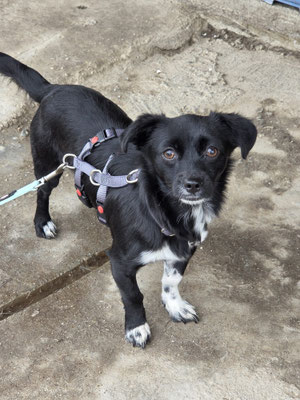 Sie wird aktuell sanft an die Leine gewöhnt, und obwohl sie noch Vorsicht zeigt, macht sie bemerkenswerte Fortschritte – ruhig, aufmerksam und mutig.