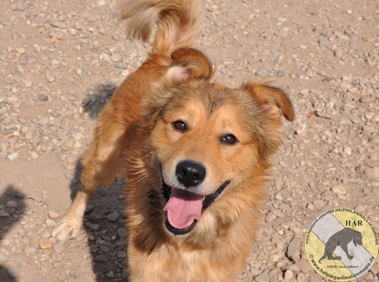 Er ist ein sehr freundlicher junger Rüde, anfangs noch etwas scheu, aber das legt sich schnell, sobald er einen kennt.