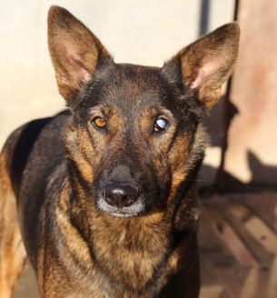 Aenor ist vermutlich ein Schäferhund-Mix und eine freundliche, sehr sanfte Hündin. Sie zeigt sich noch unsicher und vorsichtig, gleichzeitig aber auch neugierig und interessiert. Im Auslauf kommt sie nah an einen heran, sucht den Kontakt, traut sich jedoch noch nicht ganz, diesen Schritt wirklich zu gehen. Sie braucht Zeit und Menschen, die ihr diese Zeit geben und sie dabei begleiten.