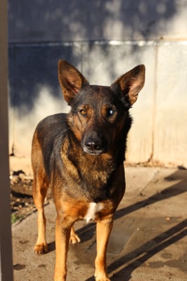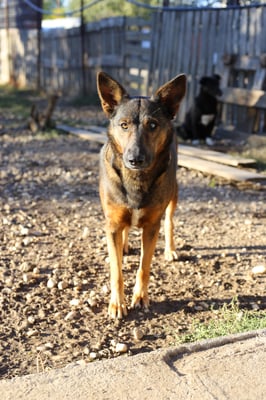 Aenor is likely a German Shepherd mix and a friendly, very gentle dog. She still appears insecure and cautious, but also curious and interested. In the exercise area, she comes close to people, seeks contact, but doesn't quite dare to take that step yet. She needs time and people who will give her that time and support her.