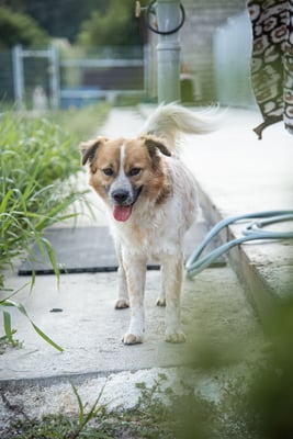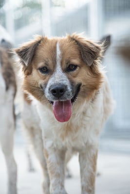 Er ist freundlich und neugierig, mit Menschen ist er aber noch sehr vorsichtig. Er hat sich bisher noch nicht streicheln lassen, kommt aber nah an einem heran und nimmt gerne Leckerli aus der