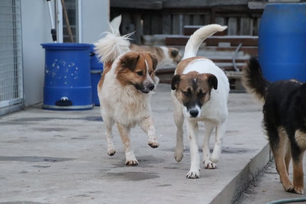 Hand. AJ orientiert sich an den anderen Hunden. Er verträgt sich gut mit seinen Artgenossen, spielt und tobt gerne mit ihnen herum, kann aber auch selbstbewusst auftreten.