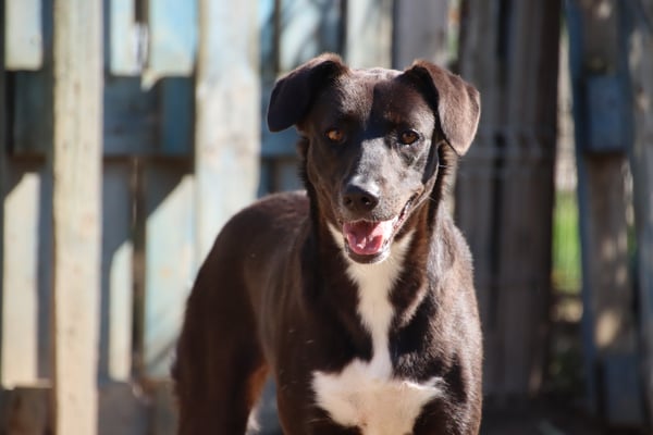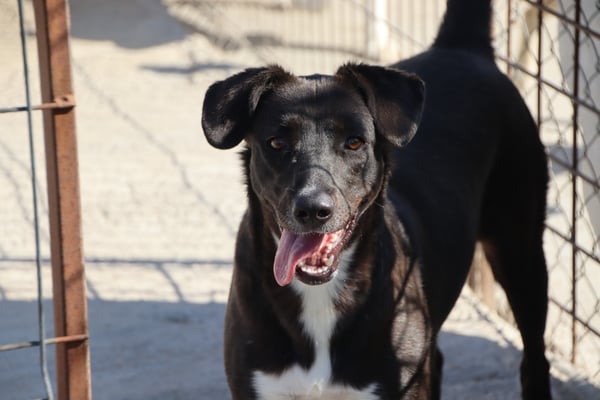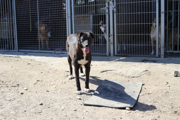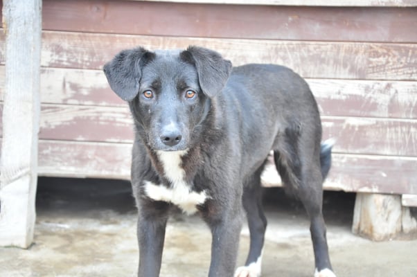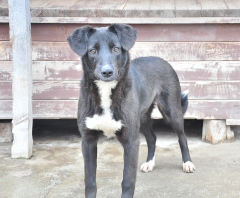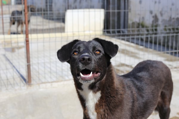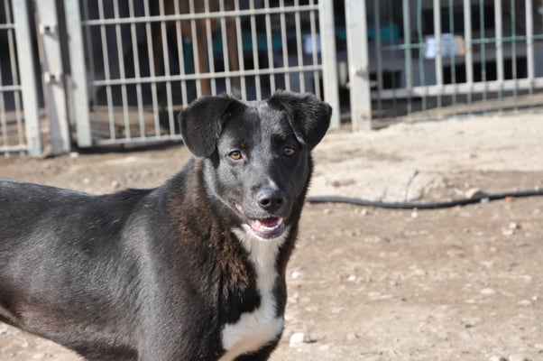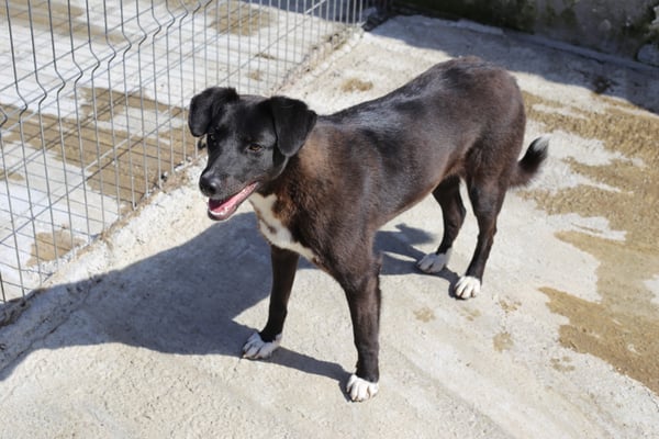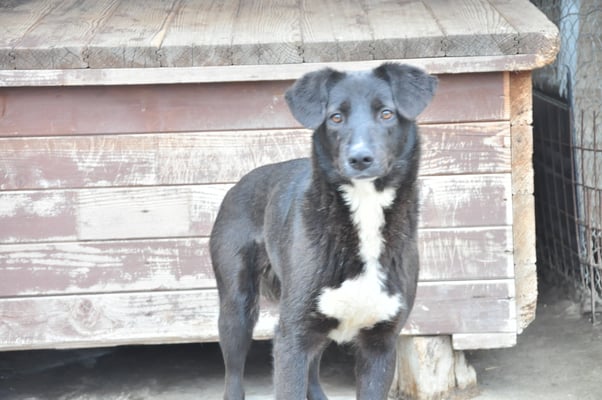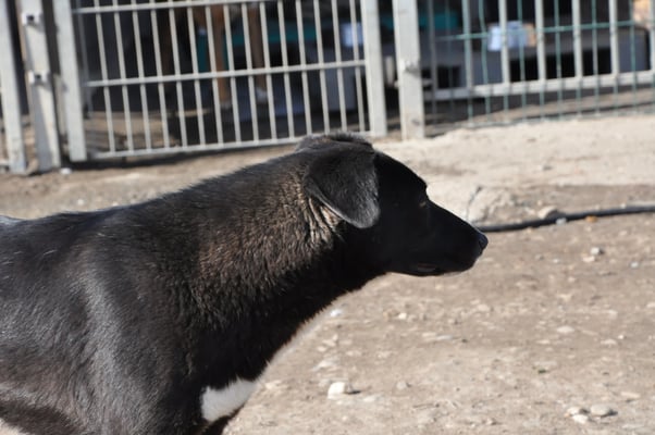 Alice ist nicht extrem scheu, aber eine vorsichtige Hündin. Sie orientiert sich sehr an den anderen Hunden im Zwinger. Mit Artgenossen ist sie im Shelter bisher sehr verträglich, eher