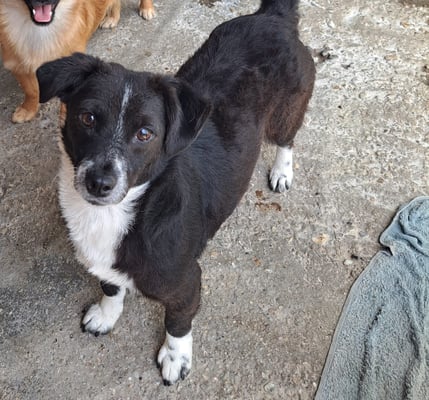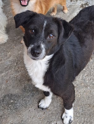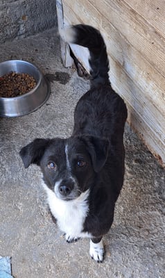 Aura wurde von Grig Mitte August 2025 gemeinsam mit ihrer Mutter, Aurora und ihren 5 Geschwistern, aus einer schwierigen Situation befreit. Die Hunde lebten auf einem Hof, wo sie sich unkontrolliert vermehrten, krank wurden und nie echte Zuwendung erfuhren. Die Besitzer wollten sie nicht mehr – und konnten sie nicht einmal selbst einfangen.