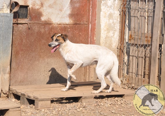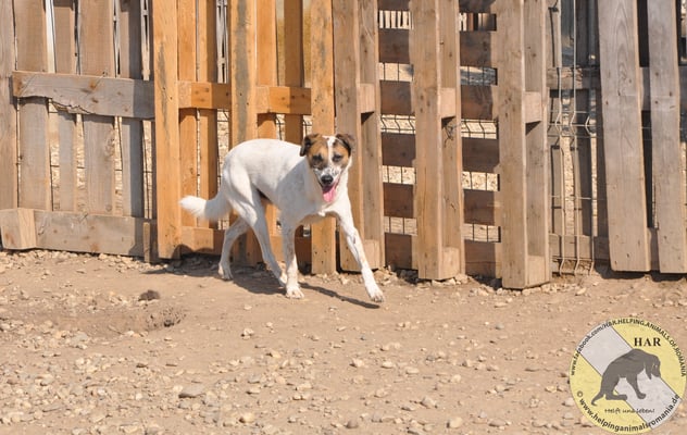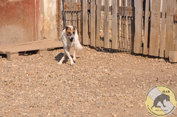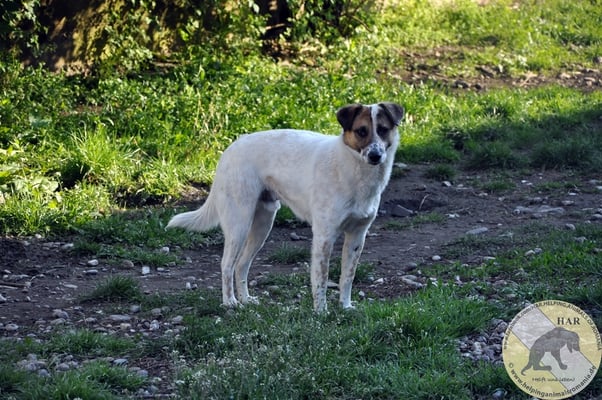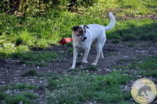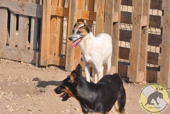 Inzwischen lässt er sich auch anfassen, wenn man sanft und vorsichtig mit ihm spricht. Sein Verhalten im Rudel ist sehr gut und ein Kumpel im neuen Zuhause, würde ihm sicher sehr helfen.