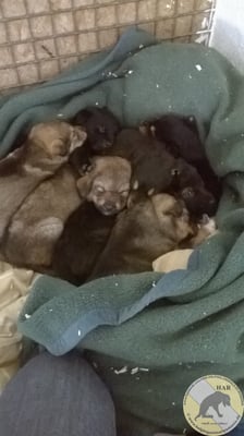 Am nächsten Tag kam der Tierarzt, mit Blasrohr ausgestattet, und sie konnte eingefangen werden. Somit zog sie mit ihren sieben Welpen bei uns ein!