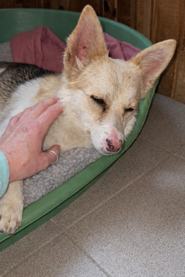 Clara zeigt sich sehr zutraulich, liebevoll und menschenbezogen und genießt Streicheleinheiten gerade ganz besonders. Man merkt, wie sehr sie Nähe nachgeholt hat, die ihr lange gefehlt haben muss. Trotz allem wirkt sie ruhig, sanft und dankbar – eine kleine Seele, die einfach ankommen möchte.