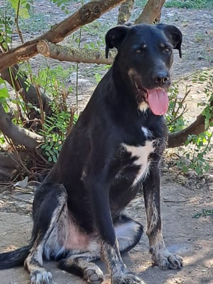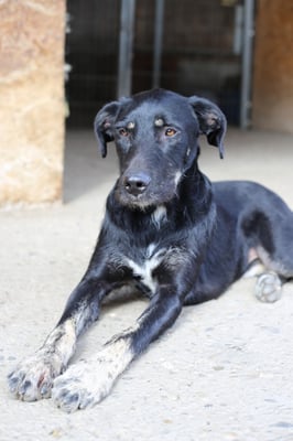 Looking at him, you could assume that a German shepherd probably had a hand in his ancestry. There could also have been a rough-coated breed, perhaps a giant schnauzer? But we can only guess, at the moment he doesn't show any typical breed behavior. This is also difficult to judge here at the shelter and always depends on the nature of his future owners. To be on the safe side, however, it might make sense to look into the potentially typical behaviors of this breed in order to be able to offer him appropriate exercise and training right from the start.