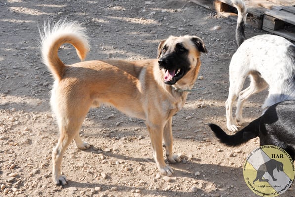 Damax is a rather calm dog, but he also approaches you and likes to take treats. He is a friendly male, but we should not forget that he is a guard dog, recognisable by the "black mask" on his