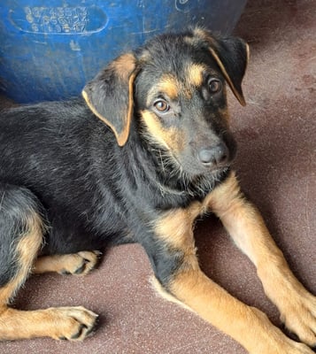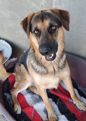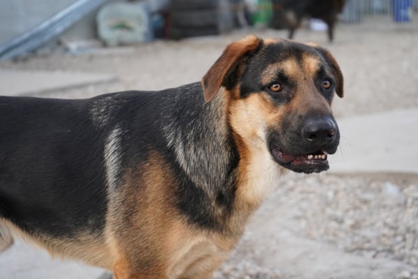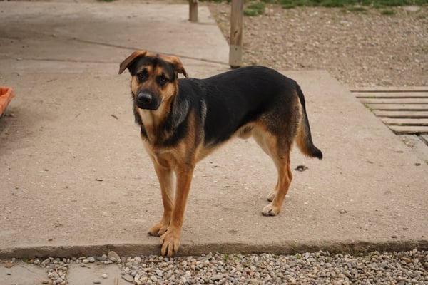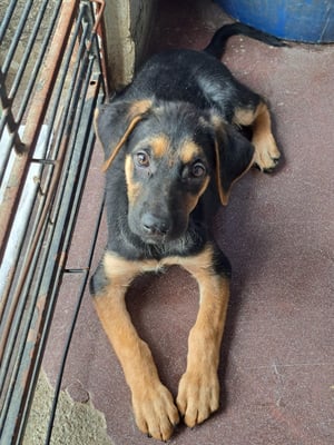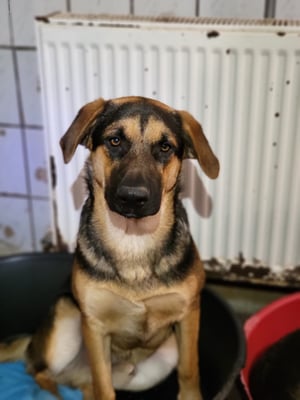 He is now a handsome young male who, from his appearance, is probably a German Shepherd mix. Domi is very people-oriented and also open-minded towards strangers. He is a cuddly young dog who likes to push himself into the foreground and also in relation to his toys or food he shows slight tendencies of defending behavior. At the same time, he is currently still easy to correct and not overbearing. However, this may also be due to the fact that there is currently a large space in relation to the other dogs, where these situations rarely arise and there are always possibilities for evasion. In a smaller space this may be different, at least if a dog with similar characteristics meets Domi. Basically Domi is well compatible with other dogs, he currently lives with about 25-30 dogs of different ages in a large enclosure and run together.