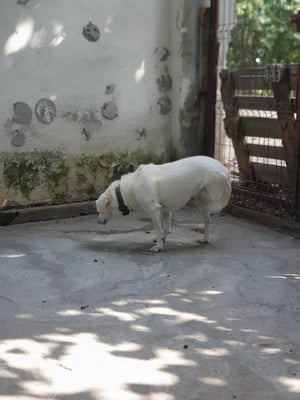 Ella (vorher Cinderella) kommt ursprünglich aus Rumänien. Sie wurde dort vom Hof einer Firma geholt, wo sie von einem Auto angefahren wurde, aber man brachte sie zu spät zum Tierarzt. Ihr Beingelenk war gebrochen und konnte nicht mehr repariert werden. Auf diese Weise verlor sie ihr Bein...