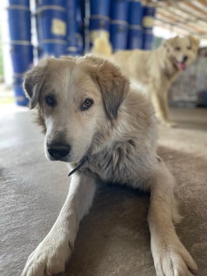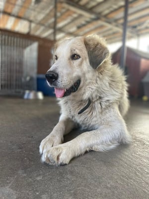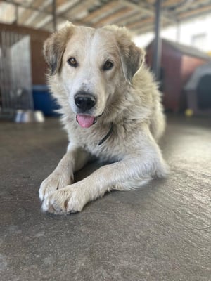 Mit Flocke, eine Hündin mit der er zusammen zu uns gekommen ist, hat er sogar eine innige Freundschaft geschlossen, zeigt sich hier verspielt und freundlich. Trotzdem würden wir ihn als Herdenschutzmischling nicht als einen Hund beschreiben, der potentiell mit jedem Hund auskommt (das liegt auch einfach nicht in der Natur dieser Rasse) und präferieren demnach ein Zuhause als Einzelhund, bzw. wenn ein anderer Hund bereits vorhanden wäre, Menschen die wissen wie man solch eine Zusammenführung gut bewerkstelligen kann und dass dies vor allem auch Zeit und Hundeverstand braucht.