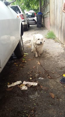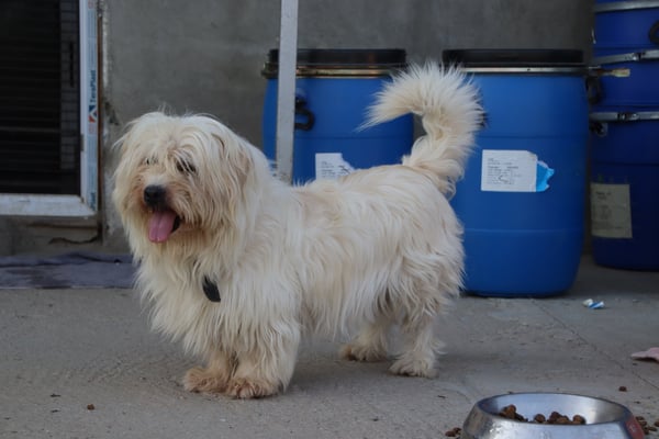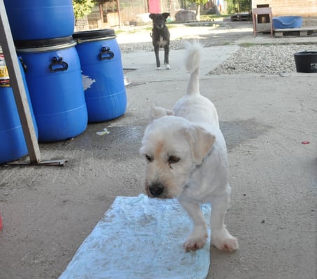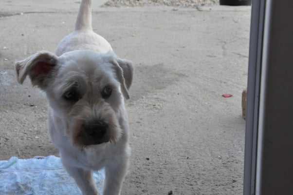 Hummel originally had an owner. Grig got a quick call that someone wanted to get rid of his dog, so he hitched him on a garden fence. Of course we picked him up right away.