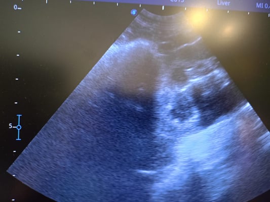But then our dear Grig finally recognized the cause of her terrible condition: the poor girl was full of heartworms! An x-ray and an ultrasound showed the true extent of the situation.