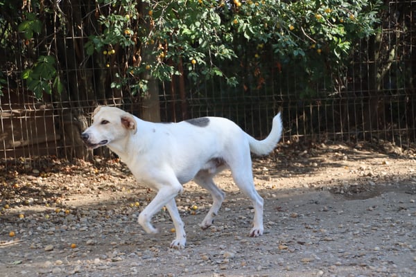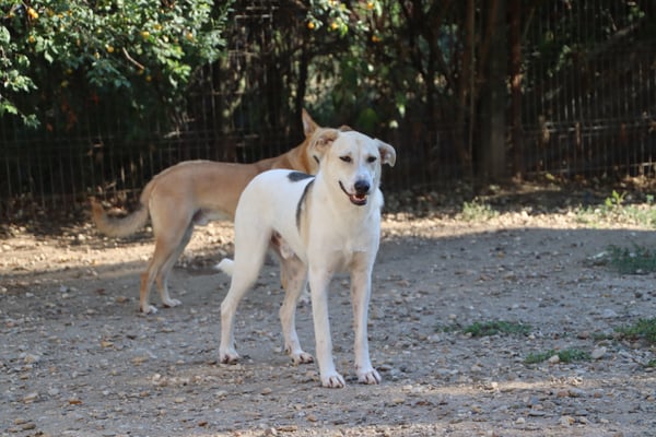 Er ist leicht noch sehr scheu, gleichzeitig aber auch sehr neugierig. Wenn er in seinem Zwinger ist und man vorbei geht, bellt er sehr viel, es scheint ihm Angst zu bereiten. Sobald er allerdings