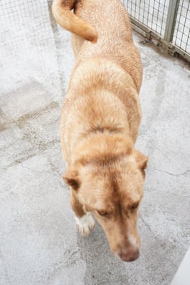It is suspected that there is some livestock guardian dog in his genes, so his new family should be aware that without consistent guidance, some breed-specific traits may emerge, such as making independent decisions and exhibiting territorial behavior.