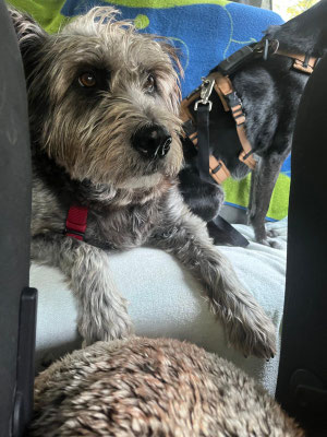 Draußen ist Magdalena mit Begeisterung unterwegs. Sie läuft bereits gut an der Leine, liebt lange Spaziergänge und gemeinsame Unternehmungen. Für sie wünschen wir uns ein Zuhause mit Garten oder Menschen, die viel Zeit in der Natur verbringen. Sie kann in der Pflegestelle bereits gut gemeinsam mit der vorhandenen Hündin allein bleiben und findet auch in Restaurants nach etwas Zeit zur Ruhe. Kinder ab etwa 12 Jahren dürfen gern im neuen Zuhause leben, sollten aber standfest sein und Erfahrung im Umgang mit Hunden haben, denn Magdalena zeigt ihre Zuneigung manchmal mit vollem Körpereinsatz.
