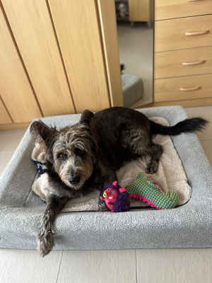Magdalena zeigt sich als sehr freundliche, ruhige und empathische Hündin. In der Wohnung ist sie ausgeglichen, stubenrein, läuft sicher Treppen und hat keinerlei Angst vor Alltagsgeräuschen. Sie liebt Streicheleinheiten, fordert Zuneigung gerne ein und bleibt bei der Fellpflege entspannt. Mit anderen Hunden versteht sie sich gut, nur mit Katzen und Kleintieren ist sie nicht verträglich.