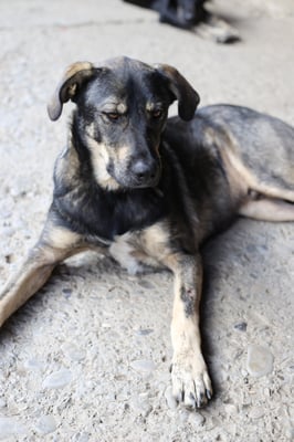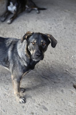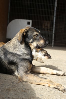 Looking at him, you could assume that a German shepherd probably had a hand in his ancestry. There could also have been a rough-coated breed, perhaps a giant schnauzer? But we can only guess, at the moment he doesn't show any typical breed behavior. This is also difficult to judge here at the shelter and always depends on the nature of his future owners. To be on the safe side, however, it might make sense to look into the potentially typical behaviors of this breed in order to be able to offer him appropriate exercise and training right from the start.