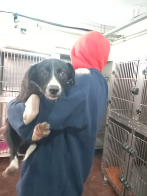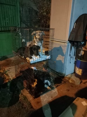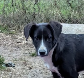 On the evening of November 12, 2025, we found her in the woods near Crevedia, along with her brother Rolf, and a sister, Johanna. A Romanian man found the little siblings while walking his dog, took them to a farmer's fenced orchard, and fed them there until he could contact HAR. The farmer seized the opportunity and also gave up his own puppy, female Conny – thus saving four little souls.