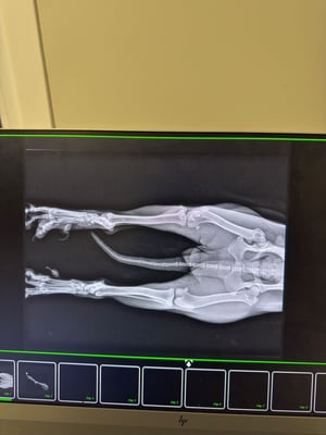 Her injuries to her hind legs have healed beautifully, leaving only scars.
