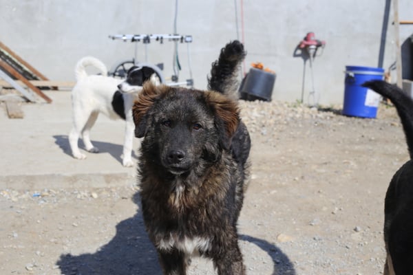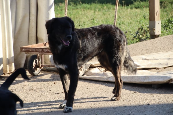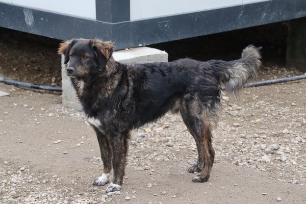 Er ist leider ein sehr zurückhaltender und ängstlicher Rüde. Er nimmt nicht mal Leckerli aus der Hand. Er orientiert sich sehr an den anderen Hunden, daher wäre ein souveräner Ersthund definitiv