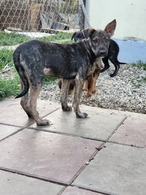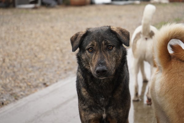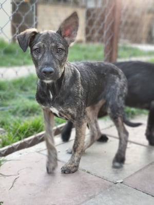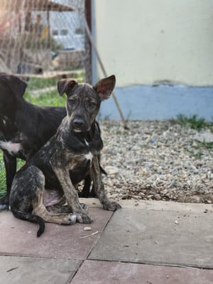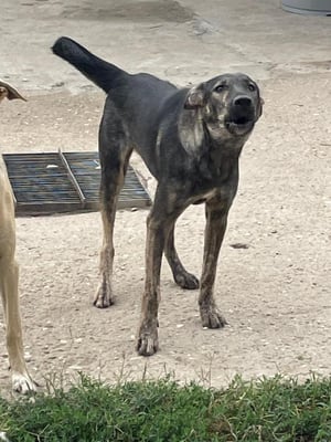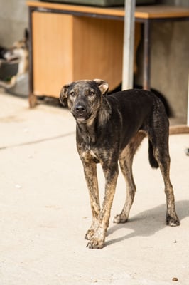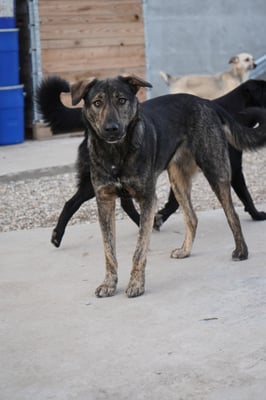 Mirja ist eine junge zurückhaltende Hündin, die noch nicht viel erlebt hat in ihrem Leben. Fremden Menschen gegenüber ist sie unsicher und bleibt auf Abstand. Bei ruhigen Annäherungsversuchen weicht sie zurück und rennt in eine entferntere Ecke. Grundsätzlich orientiert sie sich stark an den anderen Hunden und kommt im Schutz ihrer Gruppe auch mal näher an einen heran. Mit anderen Hunden zeigt sie sich generell sozial und verträglich.