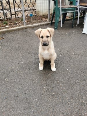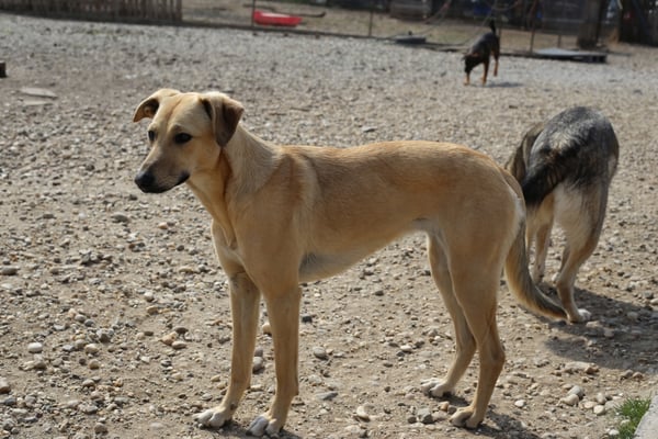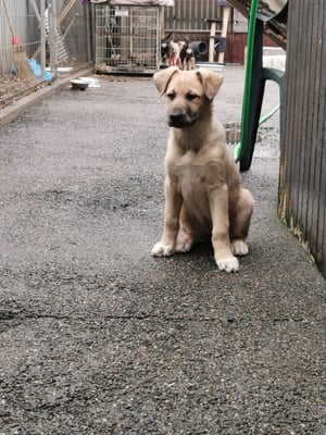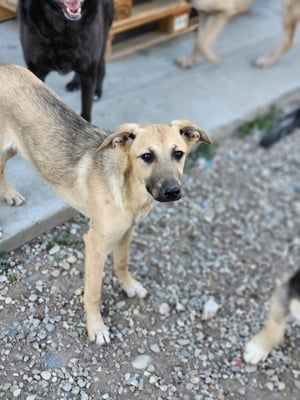 However, she is very cautious and insecure towards strangers at first. But she is also curious and comes close to get treats, whereby she is strongly oriented to the other dogs. In character she is rather calm and gentle, with the other dogs she shows herself very compatible.