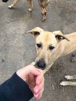 Because Moni has been at the shelter since she was a puppy, she has hardly been exposed to environmental stimuli during the important time of her development. Therefore, we see her rather in a rural environment or in a very quiet urban area, as she certainly still lacks the sovereign handling here.