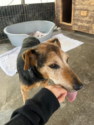 Er liebt es draußen zu sein uns freut sich jedesmal ausgiebig wenn er hört, dass jemand zu ihm in den Zwinger kommt. Allerdings darf man sich nicht so schnell oder ruckartig bewegen, denn das macht ihm etwas Angst. Über Streicheleinheiten und Zuwendung freut Pacho sich immer sehr.