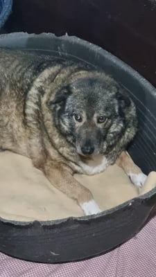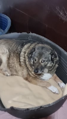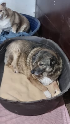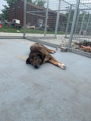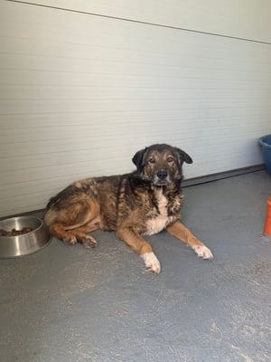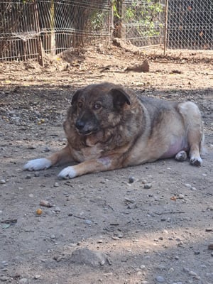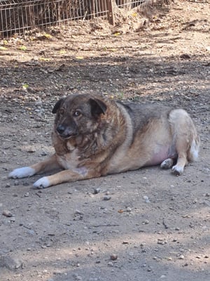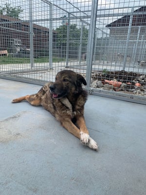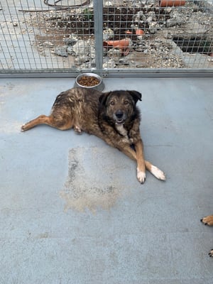 Pelle ist ein sehr schüchterner und ruhiger Rüde. Er liegt die meiste Zeit im Außenbereich in der Ecke und beobachtet das Treiben im Shelter.