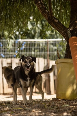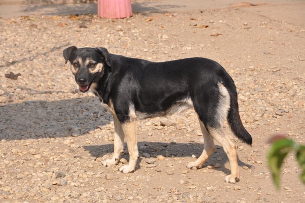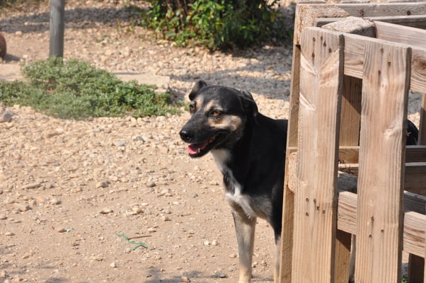 Sie ist leider extrem scheu. Sie versteckt sich gerne in ihrer Hütte, sobald man den Zwinger betritt. Wer weiß, was sie erlebt hat, dass sie solche Angst hat.
