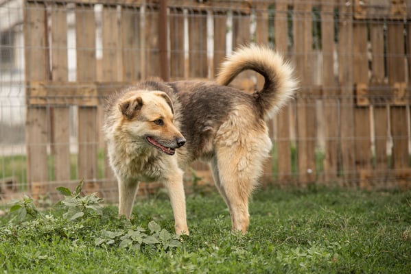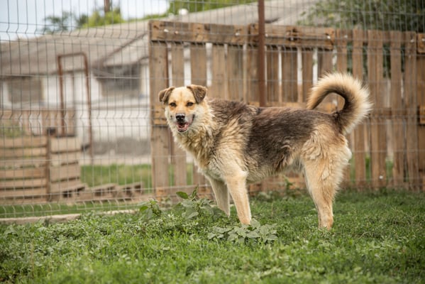 Er ist ein sehr ängstlicher Hund, gelegentlich beißt er andere Hunde, deshalb mussten wir sie umsiedeln. Jetzt ist er der einzige Rüde in seinem Gehege.