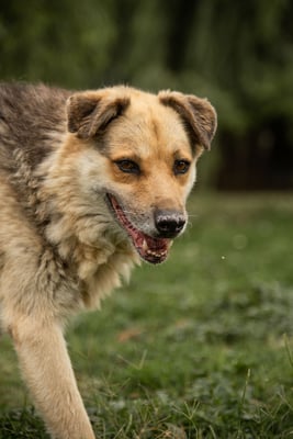 her kommen, dann kommt er freudig und schwanzwedelnd mit und nimmt auch Leckerli aus der Hand. Er ist noch sehr vorsichtig bei Menschen. Streicheln konnte ich ihn noch nicht. Sonst schließe ich
