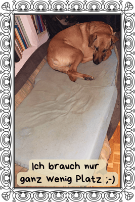 Dabei verlange ich das gar nicht, ich bin ein sehr genügsamer Hund, v.a. für mein Alter. Ich bin ja noch ein junger und agiler Kerl, verspielt und lustig, bewege mich gerne und habe Spaß dabei. Mein PF sagt immer, es ist eine Freude mir beim Laufen zuzusehen.