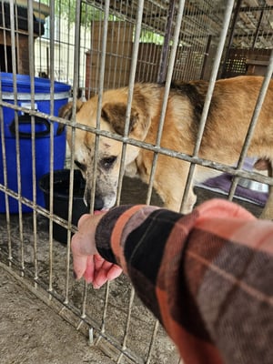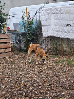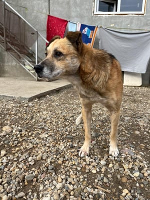 Seine Geschichte hat uns tief berührt. Mitte September 2025 hat eine tierliebe Frau ihn gefunden, wie er sich über den Boden Rumäniens schleppte, da er seine Hinterbeine nicht bewegen konnte. Laut den Anwohnern soll er Mitte August von einem Auto angefahren worden sein. Sie gab ihm zuerst zu essen, sah aber sofort, dass er dringend Hilfe brauchte.