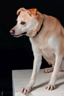 Soleil is one of the dogs we took in alongside other four-legged friends from our veterinarian. The clinic regularly reaches its capacity limits, as injured or unwanted animals frequently end up there—often without anyone ever feeling responsible for them again. That’s how Soleil came to us: he was brought to the clinic by a woman who found him very thin but fortunately unharmed. He is a dog with an unknown past, but with a lot of heart and potential for a loving future.