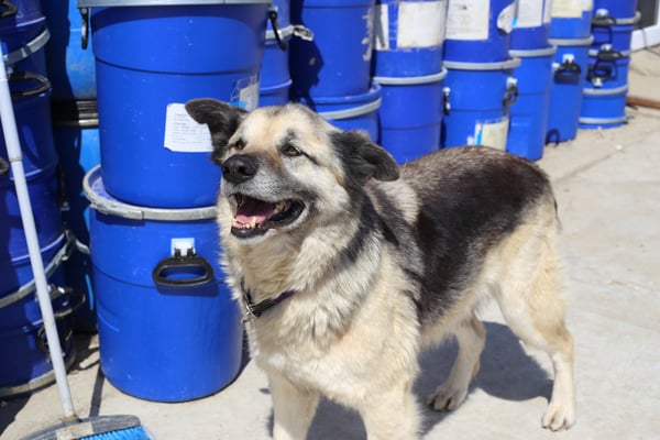Taycan was living with Tadoro, Lucie, Alice and three other dogs in a company compound. Grig got a call that the dogs had to leave there and picked them up.