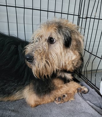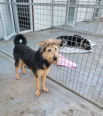 Tilda ist einer von einer Gruppe Hunde, die Grigoreta aus dem öffentlichen Tierheim in Bukarest (von der ASPA, der rumänischen Tierschutzbehörde) im Oktober 2022 übernommen hat.