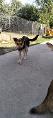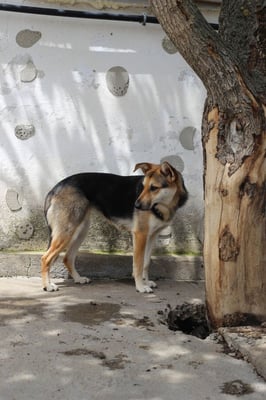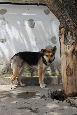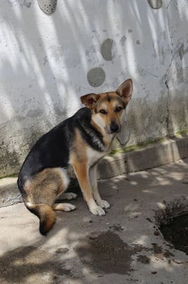 It is only possible to speculate about what Verda's life was like before the shelter; she likely lived as an unwanted street dog, without any significant or positive contact with humans. Her current reticence suggests that she either grew up in the wild or has had negative experiences. As soon as someone enters her enclosure, she seeks distance and would prefer to retreat unnoticed. Verda is not a dog that approaches boldly – on the contrary: she displays very defensive and reserved behavior, almost shy. Despite her insecurity, Verda shows good social behavior toward other dogs. She gets along excellently with other dogs and behaves calmly and inconspicuously in their presence. A confident first dog in her future home could help her navigate her environment more easily and build trust.