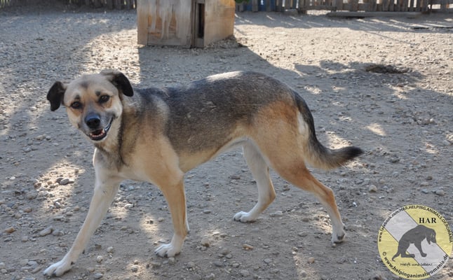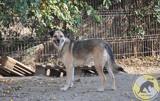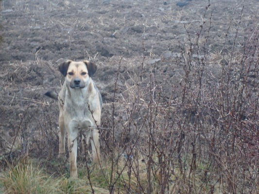 Sie wedelt sogar bei manchen Menschen, aber Nähe will sie nicht haben! Mit Hunden ist sie gut verträglich!