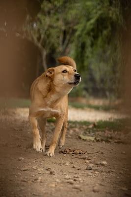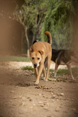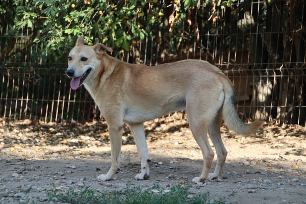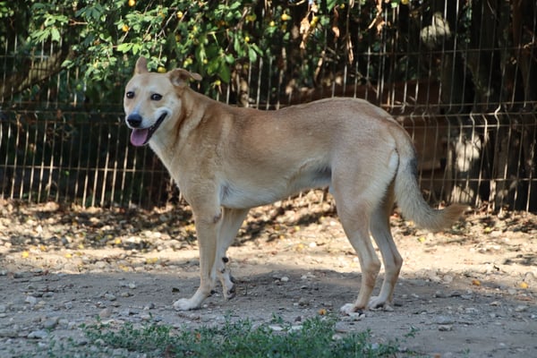 He is unfortunately very shy. In the yard he runs away from you and shows so far no interest, but just fear when it is about humans. You can touch him in the kennel, e.g. for deworming etc.,
