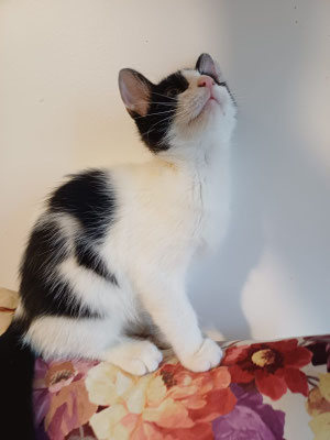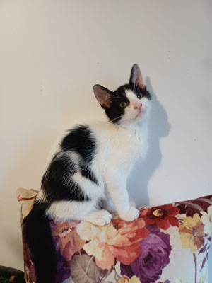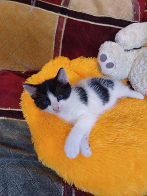 Da bei uns kein Platz mehr war, durften die Kleinen auf einer liebevollen Pflegestelle aufwachsen. Simba ist dort zu einem neugierigen, abenteuerlustigen kleinen Kater herangewachsen, der immer mittendrin ist. Er liebt es zu spielen, zu toben und Neues zu entdecken – aber auch zu kuscheln, wenn er müde wird.