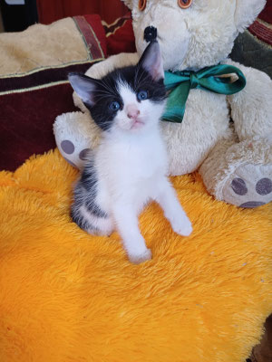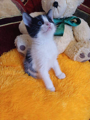 Simba is one of four adorable kittens, along with Leo, Jerry und Blacky, von Tinka, who came to us from a cemetery – like so many of our cats. When she arrived, she was pregnant and soon gave birth to Simba and his siblings.