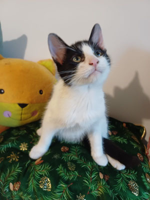 Since we didn't have room for them, the little ones were able to grow up in a loving foster home. There, Simba has grown into a curious, adventurous little cat who's always in the thick of things. He loves to play, romp around, and discover new things – but also to cuddle when he gets tired.