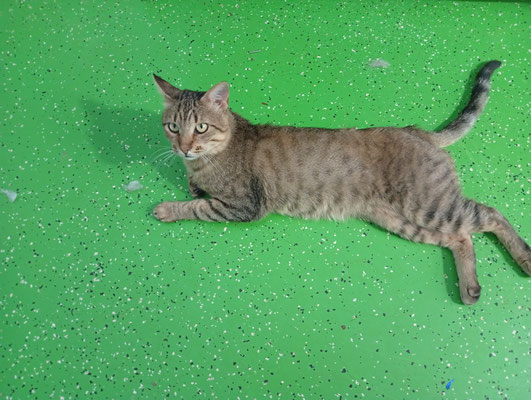 Tygris lebte ursprünglich auf einem Schulhof, wo ihn die Kinder sehr liebten. Sie brachten ihn sogar selbst zu unserer Tierärztin, um ihn kastrieren zu lassen – ein Zeichen, wie sehr er dort geschätzt wurde.